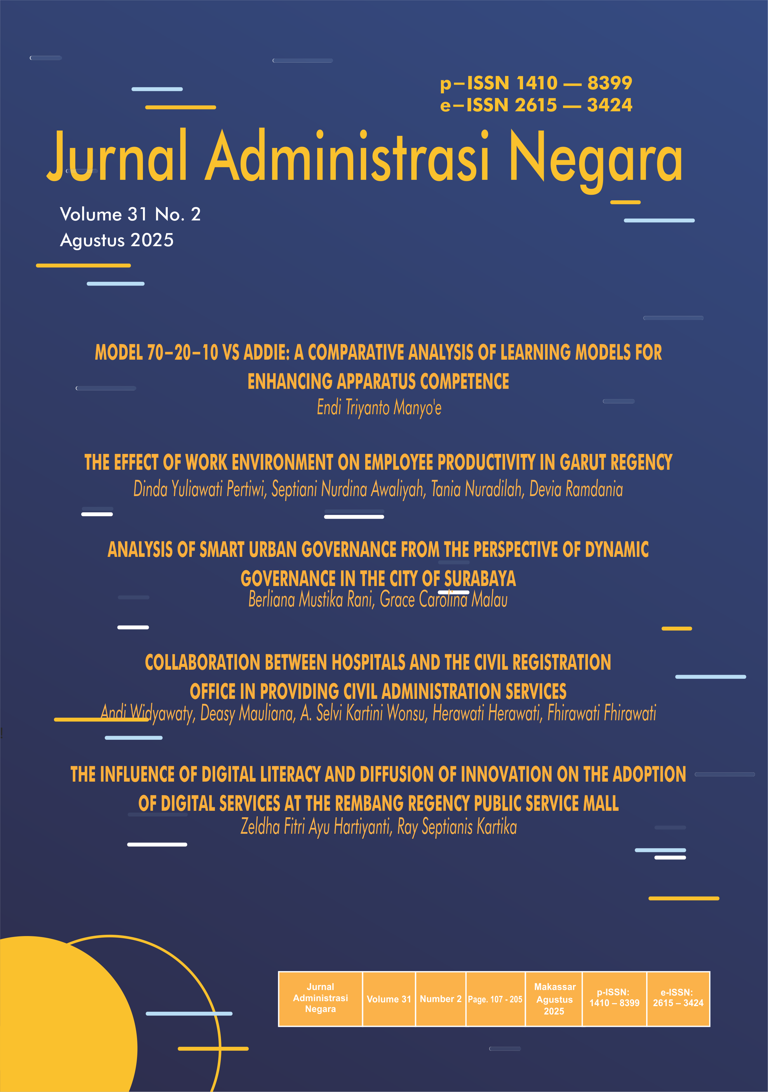Vol. 25 No. 3 (2019)Jurnal Administrasi Negara - Sekolah Tinggi Ilmu Administrasi Lembaga Administrasi Negara (STIA LAN), Makassar